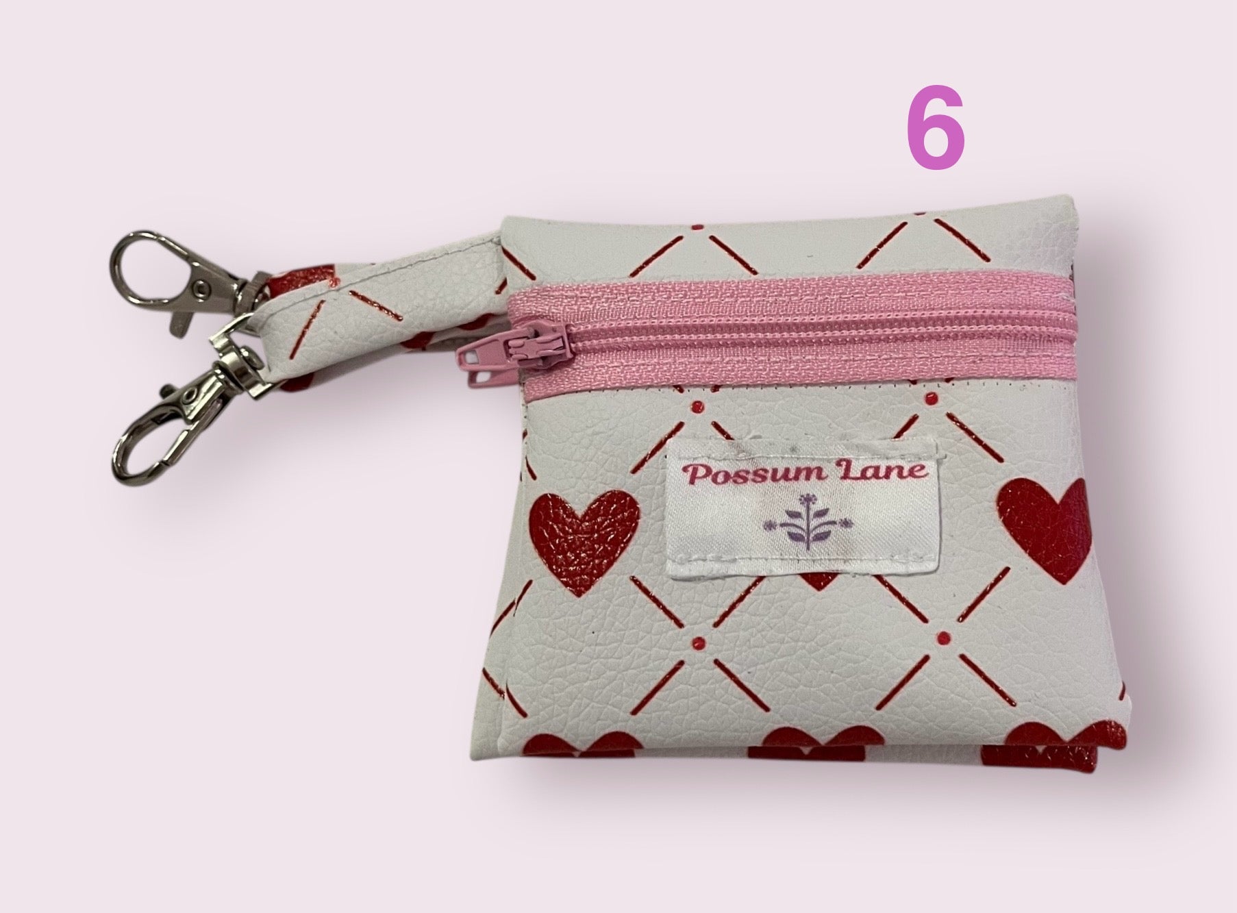 Hand sewn coin/key zip pouches with bag clip made with love and care.